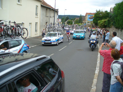 Kétszer kellett kimenni, mert először jött az ú.n. karaván. Ez az ellátó kocsikból áll, ami azért elég sok reklámfigurával van teletűzdelve. Szóval inkább május elseje, mint tényleg a staff menete. Valahol kell, hogy menjen egy pár hasznos kocsi is. Például a cserebicikliket és kerekeket vivő kocsik már közvetlenül a biciklik előtt jönnek.